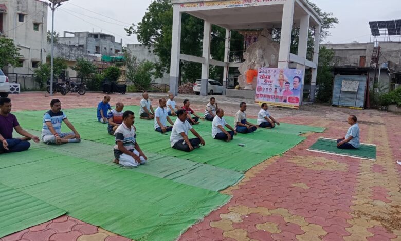 पाचोरा – येथील जिल्हाध्यक्ष व्यापार आघाडी जळगाव पश्चिम .भााजपा पाचोरा तालुकाध्यक्ष व शहराध्यक्ष सर्व पदाधिकारी बजरंग दल व आर एस एस कार्य कर्ते यांनी भडगाव रोडवरील श्री लाल बाग चा राजा गणपती यांच्या ग्राउडं वर सकाळी ६:३० ते ७:३० वाजता योगा शिबिराचे आयोजन करण्यात आले होते . विविध प्रकारचे योगासने योगा सनाचीं माहीती श्री.राजेशजी मोर यांनी दिली. आले ल्या सर्व उपस्थितांना योगा शरीरा साठी का योग्य आहे प्रत्येेक आसनाचे महत्व व योगा कसा करावा याचे प्रात्यक्षिक करुन दाखविले व त्याप्रमाणे सर्व जण योगा करीत होते.