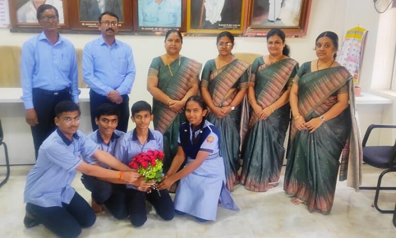शाळेच्या मुख्याध्यापिका सौ.पी.एम.वाघ मॅडम यांच्या हस्ते वरील गुणवंत विद्यार्थ्यांचा स्वागत व सत्कार करण्यात आला. सौ.वाघ मॅडम यांनी सर्व गुणवंत विद्यार्थ्यांचे कौतुक करून त्यांना पुढील वाटचालीस शुभेच्छा दिल्या.