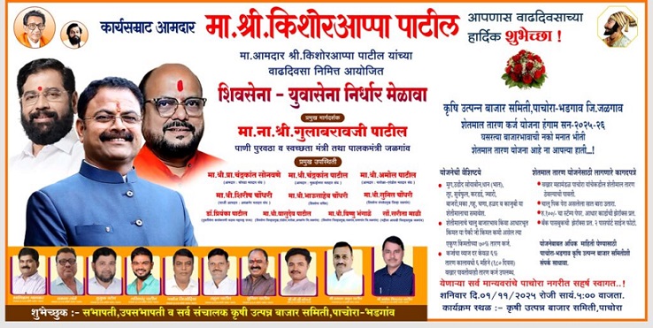 पाचोरा :- आमदार किशोरआप्पा पाटील यांचा शनिवार रोजी दिनांक एक नोव्हेंबरला होउ घातलेला शिवसेना शिंदे गटाचा पाचोरा भडगाव मतदार संघासाठी चा निर्धार मेळावा व अभिष्टचिंतन सोहळा आज पर्यंतच्या ईतीहासातील आगळा वेगळा ठरणार असल्याने मतदार संघातील तमाम पदाधिकारी कार्यकर्ते शिवसैनिक व नव्याने पक्ष प्रवेश घेऊ इच्छिणारे तसेच आमदार किशोर आप्पा पाटील यांचे चाहते लाभार्थी,कंत्राटदार असे सर्वच लोक या निर्धार मेळाव्या साठी हजेरी लावणार असल्याचे प्रथम दर्शनी दिसत आहे ज्या प्रमाणात आमदार किशोरआप्पा पाटील यांनी सबंध महाराष्ट्रातून प्रथमच आपल्या मतदार संघात स्थानिक स्वराज्य संस्थांन मधील निवडणुकीत युती न करन्याचा निर्णय घेतला आहे तो कितपत यशस्वी होईल हे येणार काळच सांगेल परंतु पाचोरा भडगाव मतदार संघातील संपूर्ण स्थानिक स्वराज्य संस्थेचे निवडणुका या स्वतंत्र लढणार व युती करणार नाही याबाबत त्यांनी प्रसार माध्यमांमध्ये आधीच डिक्लेअर केलेले असल्याने आता फक्त सर्व कार्यकर्ते पदाधिकारी यांचा पाठिंबा आहे ही बाब या निर्धार मेळाव्याच्या माध्यमातून आमदार साहेब नक्कीच जाणून घेणार असल्याने येणाऱ्या सर्व निवडणुकांमध्ये यश मिळवणे कठीण नाही यासाठी सर्वप्रथम किशोरआप्पा पाटील हे शक्तिप्रदर्शन करताना दिसतील यात काही शंका नाही.