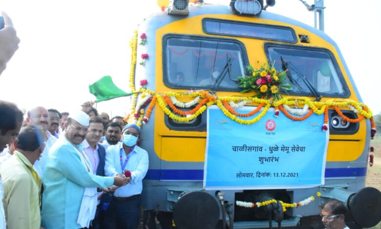 जळगाव, दि 13 : चाळीसगाव-धुळे रेल्वे मार्गावर धावणाऱ्या मेमू रेल्वे सेवेला आजपासून प्रारंभ झाला. केंद्रीय रेल्वे, कोळसा आणि खाण राज्यमंत्री रावसाहेब दादाराव पाटील दानवे यांनी नवी दिल्ली येथून दूरदृश्य प्रणालीद्वारे, तर राज्याचे महसूल, ग्रामविकास, बंदरे, खार जमीन विकास व विशेष साहाय्य राज्यमंत्री तथा धुळे जिल्ह्याचे पालकमंत्री अब्दुल सत्तार यांनी चाळीसगाव रेल्वे स्थानक येथे मेमू रेल्वेला हिरवा झेंडा दाखविला.