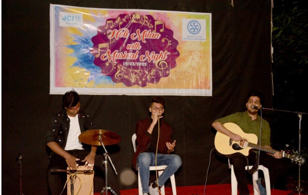 जे.सी.आय. व रोटरी क्लब च्या संयुक्त विद्यमाने द म्युझिक्रॅट्स युनायटेड ग्रुप मुंबई च्या संगीत सुरांनी होली मिलन संध्येला रंगत आणली. गणेश वंदना ने सुरू झालेल्या या संगीत संध्येत लोकप्रिय हिंदी- मराठी चित्रपटातील तसेच चिरतरुण अल्बम गीते सादर करण्यात आली. रोटरी क्लबचे उपप्रांतपाल रो. राजेश बाबूजी मोर यांच्या संकल्पनेतून ही संगीत संध्या घेण्यात आली. द म्युझिक्रॅट युनायटेड ग्रुप मधील मुख्य गायक शुभम साबळे, पर्कशन वाद्य वादक प्रीतम गच्चे, आणि गिटारिस्ट तथा गायक अथर्व कानेटकर यांनी उपस्थितांची मने जिंकली.