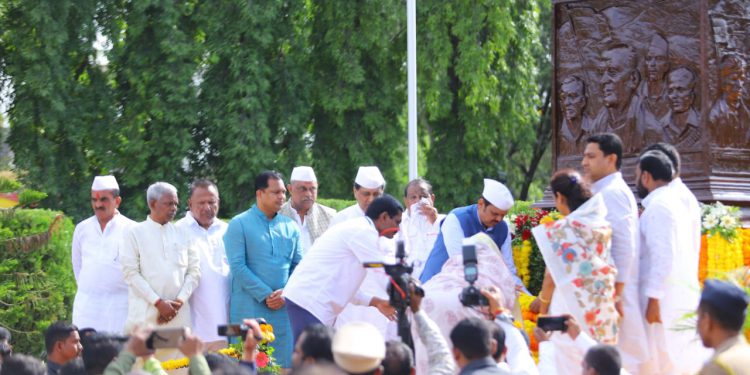 यावेळी नांदेडचे भूमिपुत्र शहिद सहायक कमांडेट सुधाकर राजेंद्र शिंदे यांच्या अवलंबितास एक कोटी रूपयांचा धनादेशाचे उपमुख्यमंत्री देवेंद्र फडणवीस यांच्या हस्ते देण्यात देण्यात आले. याप्रसंगी नांदेड जिल्हा परिषद यांच्याकडून तयार करण्यात आलेल्या नांदेड जिल्हा पुस्तीकेचे विमोचन उपमुख्यमंत्री देवेंद्र फडणवीस यांच्या हस्ते करण्यात आले. याप्रसंगी आरोग्य विभाग, जिल्हा परिषद यांच्याकडून तयार करण्यात आलेल्या पोषण मार्गदर्शिचे विमोचन करण्यात आले. जिल्हा परिषद नांदेड कडून तयार करण्यात आलेल्या मराठवाडा मुक्ती संग्रामाची गौरव गाथा या घडीपुस्तीकेचे विमोचन याप्रसंगी करण्यात आले. तसेच कृषी विभागाच्या योजनांचे व रानभाजी पाककृती पुस्तीकेचे विमोचन करण्यात आले. परेड कमांडर विजयकुमार धोंगडे यांच्या पथकाने शहीद स्मारकाला जनरल सॅल्युट सलामी दिली. कार्यक्रमाचे सुत्रसंचलन गटशिक्षणाधिकारी व्यंकटेश चौधरी व नायब तहसीलदार स्नेहलता स्वामी यांनी केले.