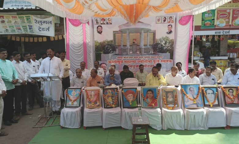 पाचोरा – येथे दिनांक १ नोव्हेंबर २०२२ रोजी पाचोरा येथील जवळपास ३० वर्षांपेक्षा जास्त कालावधीपासून प्रलंबित असलेला महात्मा ज्योतिबा फुले यांच्या स्मारकाचा विषय आमदार किशोर आप्पा पाटील यांच्या प्रयत्नांमुळे पूर्णत्वास आला आहे. पाचोरा आणि भडगाव मतदार संघाचे आमदार किशोर आप्पा पाटील यांच्या वाढदिवसाचे औचित्य साधून पाचोरा येथे रेल्वे स्टेशनवर वरील डॉक्टर बाबासाहेब आंबेडकर यांच्या पुतळ्याजवळ महात्मा ज्योतिबा फुले स्मारक बसवण्यात येणार असून यासाठी २० लाख रुपयांचा निधी आमदार किशोर आप्पा पाटील यांच्या स्थानिक विकास निधीच्या माध्यमातून दिला आहे. आमदार किशोर आप्पा पाटील यांनी स्मारकाचे काम सुरू केल्या बाबत सर्वत्र माळी व बहुजन समाजाच्या वतीने आमदार किशोर आप्पा पाटील यांचे आभार व्यक्त करण्यात आले आहे.