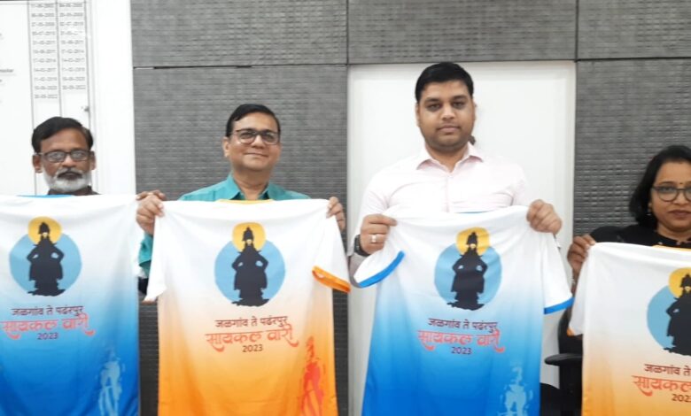 जळगाव – येथील cyclist ग्रुप तर्फे पहिल्यांदाच दि.14 जून ते 16 जून 2023 दरम्यान पर्यावरणाचा संदेश देण्याच्या उद्देशाने जळगाव ते पंढरपूर सायकल वारीचे आयोजन करण्यात आले आहे. नुकतेच जिल्हाधिकारी श्री अमन मित्तल, जिल्हा नियोजन अधिकारी श्री. प्रतापराव पाटील यांचे हस्ते सायकल वारीत वापरल्या जाणार्या Tshirts चे अनावरण करण्यात आले. यावेळी जिल्हाधिकारी यांनी सायकल वारीतील सदस्यांचा उत्साह वाढवत शुभेच्छा दिल्या. 14 जून 2023 रोजी सायकल वारीची सुरुवात सकाळी 5 वाजता विठ्ठल मंदिर, जुने जळगाव येथून होणार आहे. या सायकल वारीमध्ये जळगाव, भुसावळ, जामनेर येथील सायकलिस्ट सहभागी होत असून यात 4 महिलांचाही समावेश आहे. तब्बल 490 किमी चे अंतर सायकलिंग करत सायकलिस्ट वारकरी तिसर्या दिवशी पंढरपूरला पोहोचणार आहेत. आयोजका तर्फे सायकलिस्ट वारकरी साठी हायड्रेशन, ब्रेकफास्ट, जेवण, रहाणे आदींची व्यवस्था करण्यात आली आहे.