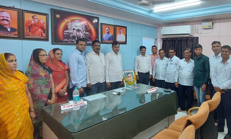 कृषी दिनी पाचोरा कृषी उत्पन्न बाजार समितीत कै.वसंतराव नाईक यांचे प्रतिमा पूजन.